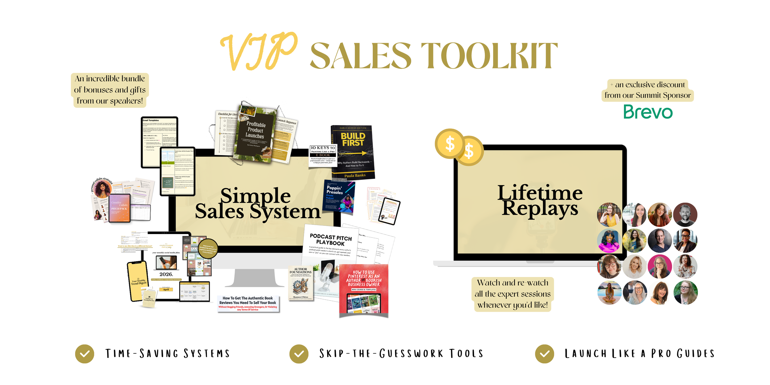 Upgrade your ticket for lifetime access to every single presentation, exclusive speaker bonuses (we’re talking playbooks, step-by-step courses, template packs and more!), and a special discount from our summit sponsor Brevo — plus over $500 worth of resources to help you grow your audience and sell more of your work, long after the summit wraps up.